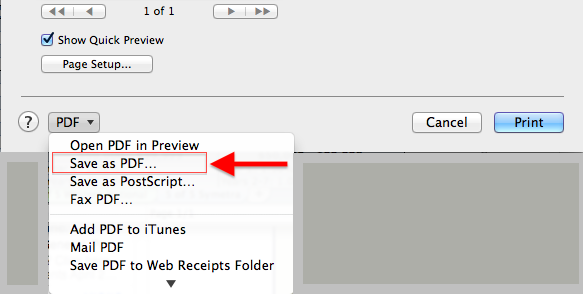 - When the print dialog opens you will be able to save your sheet (I emphasize sheet here because you will have to repeat this step for every sheet in your workbook. I know annoying). Click the drop down button that says PDF and choose Save as PDF...
